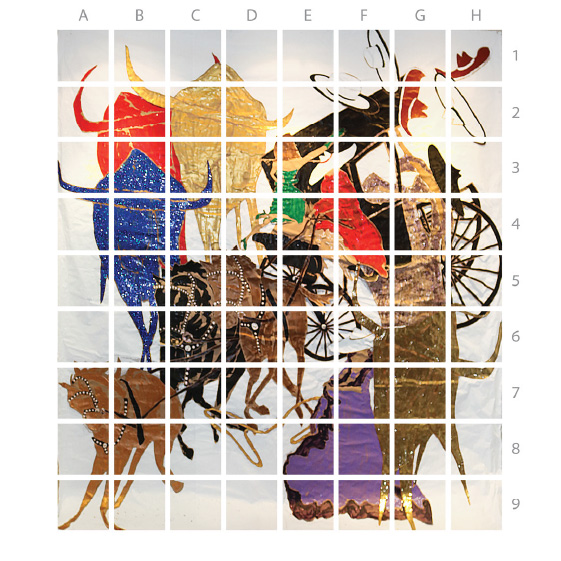 View the overview gridded map to explore available pieces and find the one that speaks to you. Use the dropdown below to select the corresponding coordinates.